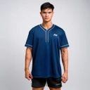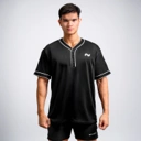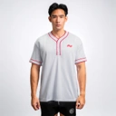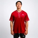 Aksen garis putih yang elegan di bagian lengan dan kerah, ditambah detail 3 kancing klasik di leher, memperkuat nuansa heritage baseball yang timeless namun tetap modern.